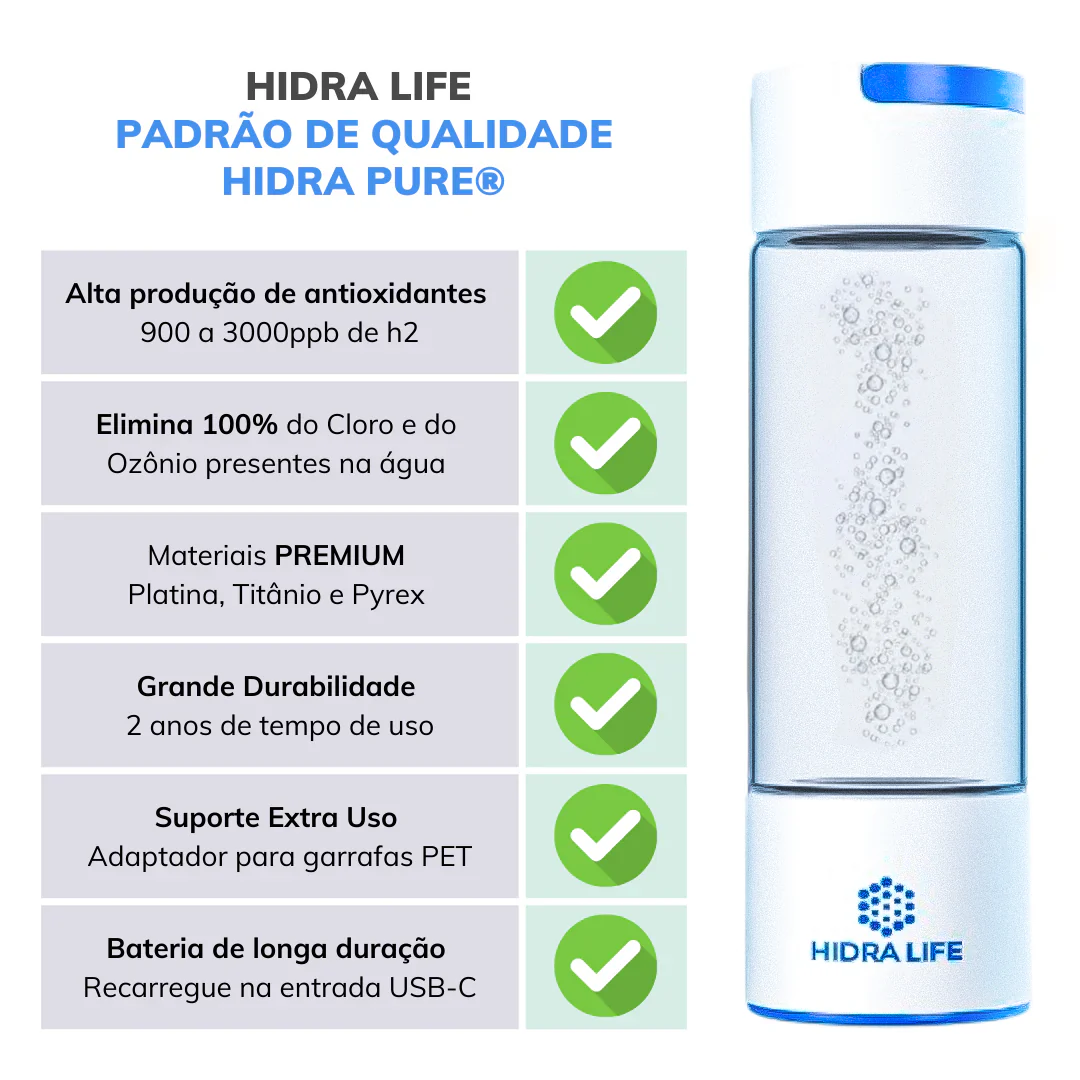 Hidra Life® Garrafa Geradora de Hidrogênio Molecular - Eletrólise Avançada